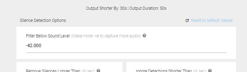 The problem is “Filter Below” value needs to be between -30 to -45. Click ‘Update silence detection settings’ for the changes to take effect.