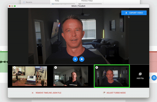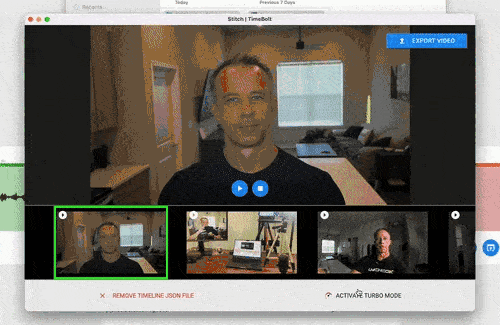 - Edit each individual video in TimeBolt and click 'Save Timeline Cuts'. Your cut list is saved as a JSON file you will later apply in Stitch.